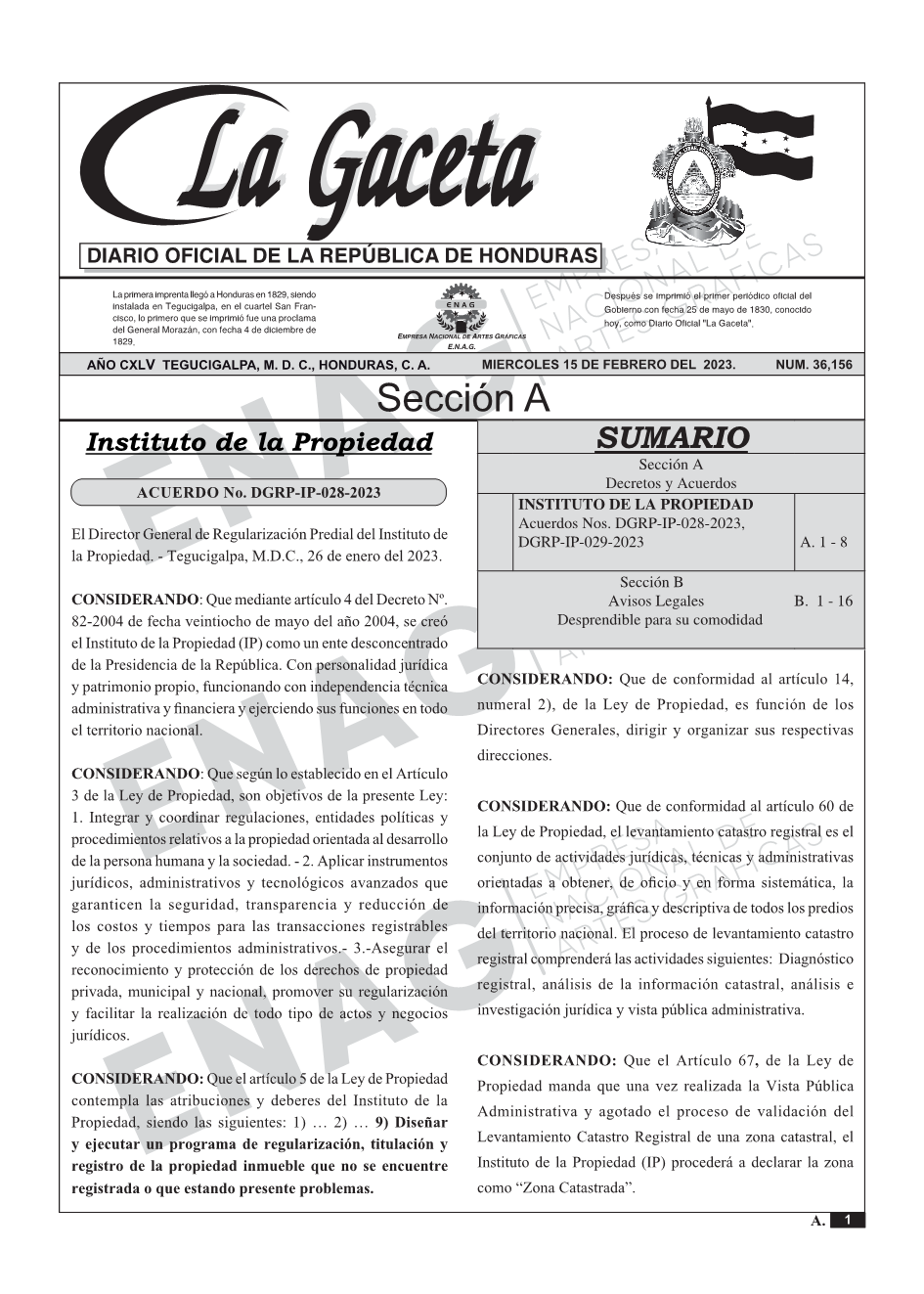 La Gaceta N° 36,156 del 15 de febrero de 2023