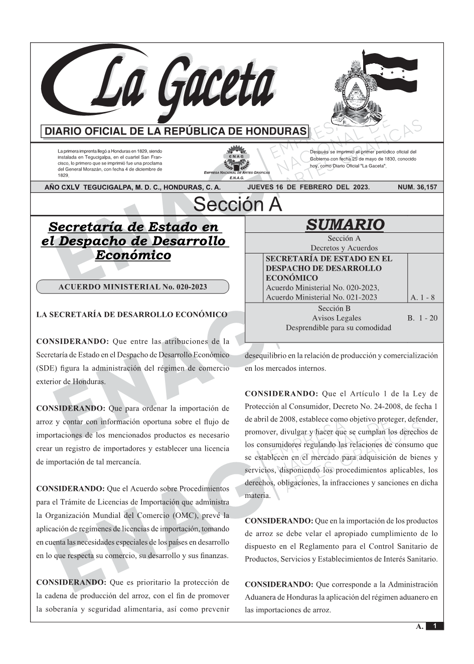 SECRETARÍA DE ESTADO EN EL DESPACHO DE DESARROLLO ECONÓMICOAcuerdo Ministerial No. 020-2023, Acuerdo Ministerial No. 021-2023