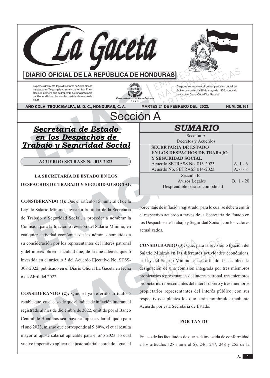 SECRETARÍA DE ESTADO EN LOS DESPACHOS DE TRABAJO Y SEGURIDAD SOCIALAcuerdo SETRASS No. 013-2023, Acuerdo No. SETRASS 014-2023