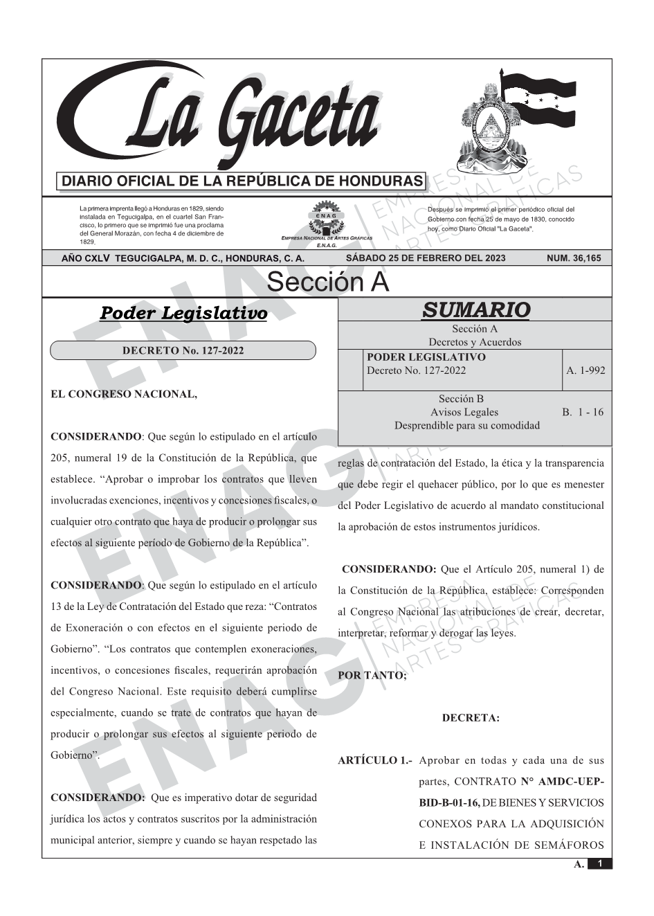 La Gaceta N° 36,165 del 25 de febrero de 2023