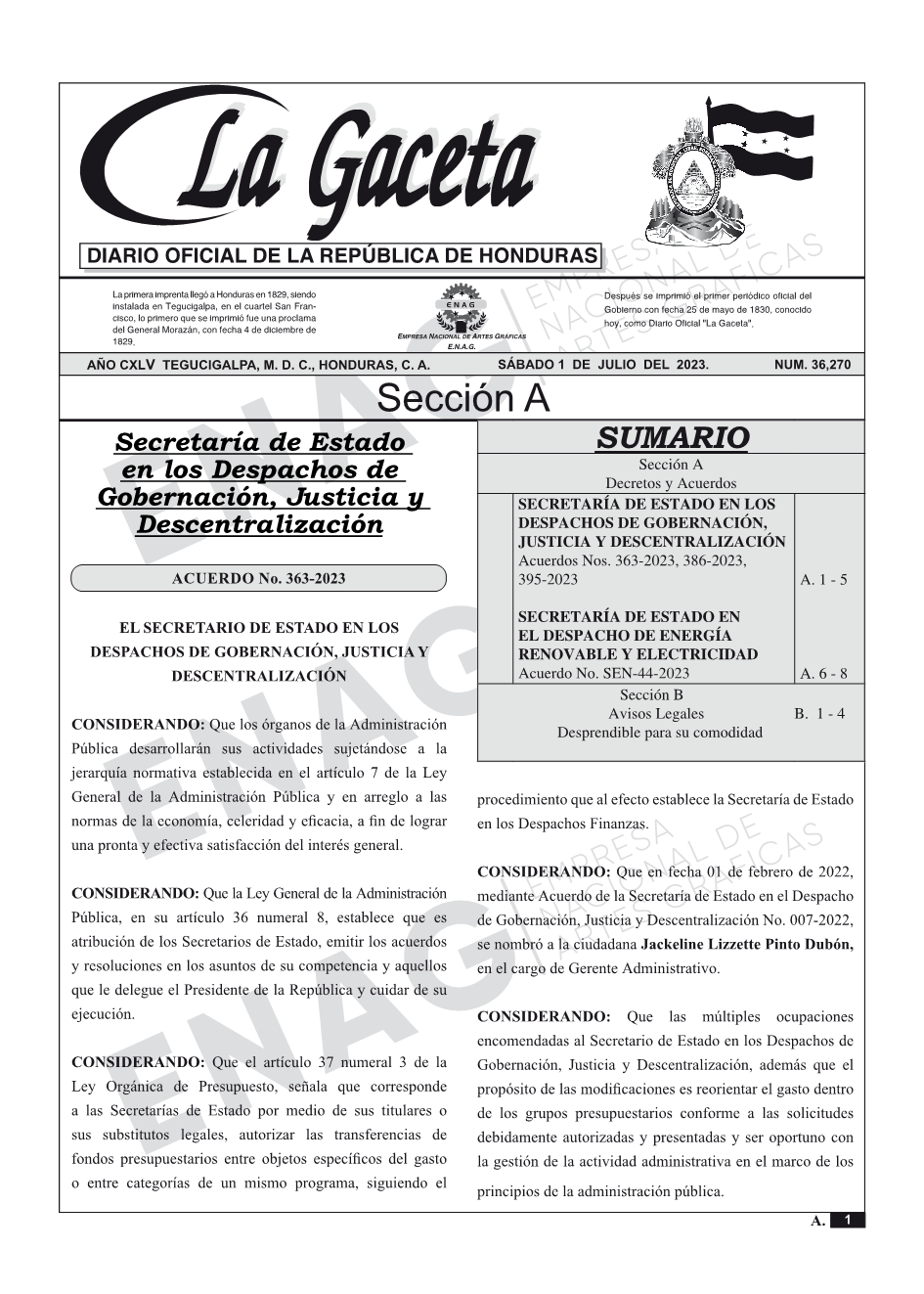 SECRETARÍA DE ESTADO EN LOS DESPACHOS DE GOBERNACIÓN, JUSTICIA Y DESCENTRALIZACIÓNAcuerdos Nos. 363-2023, 386-2023, 395-2023.