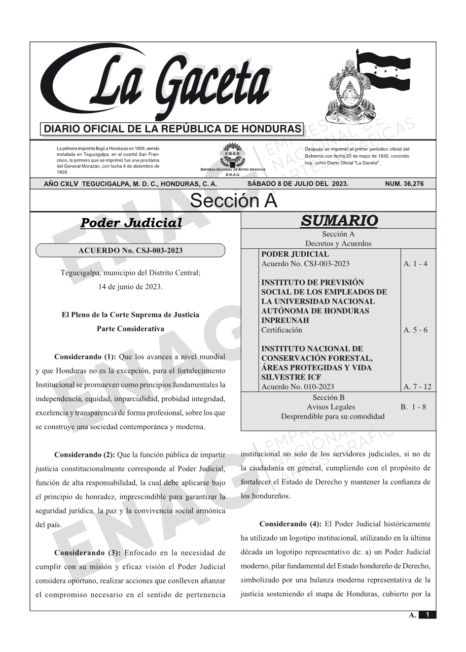 La Gaceta N° 36,276 del 08 de julio de 2023