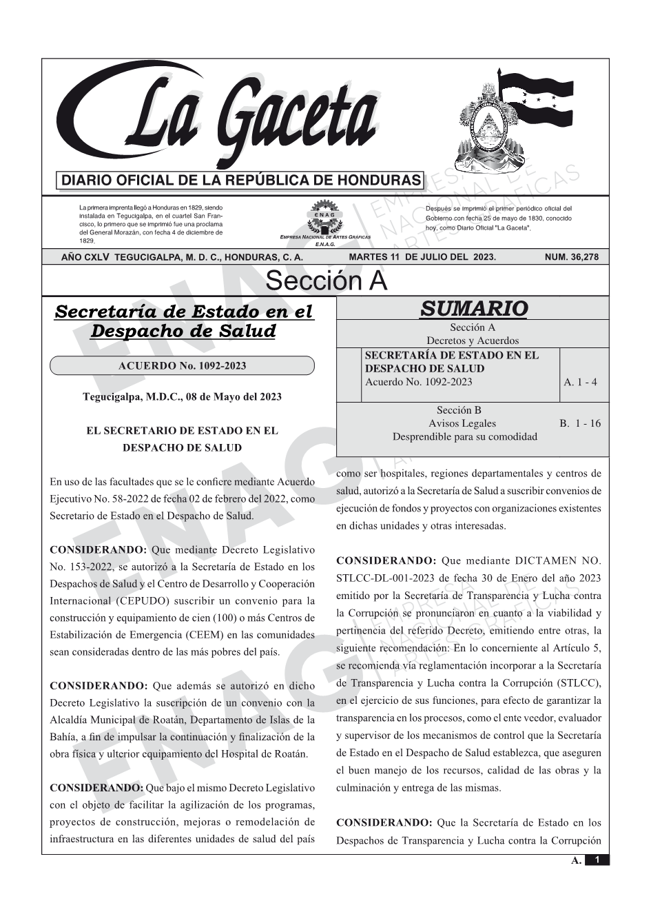 La Gaceta N° 36,278 del 11 de julio de 2023
