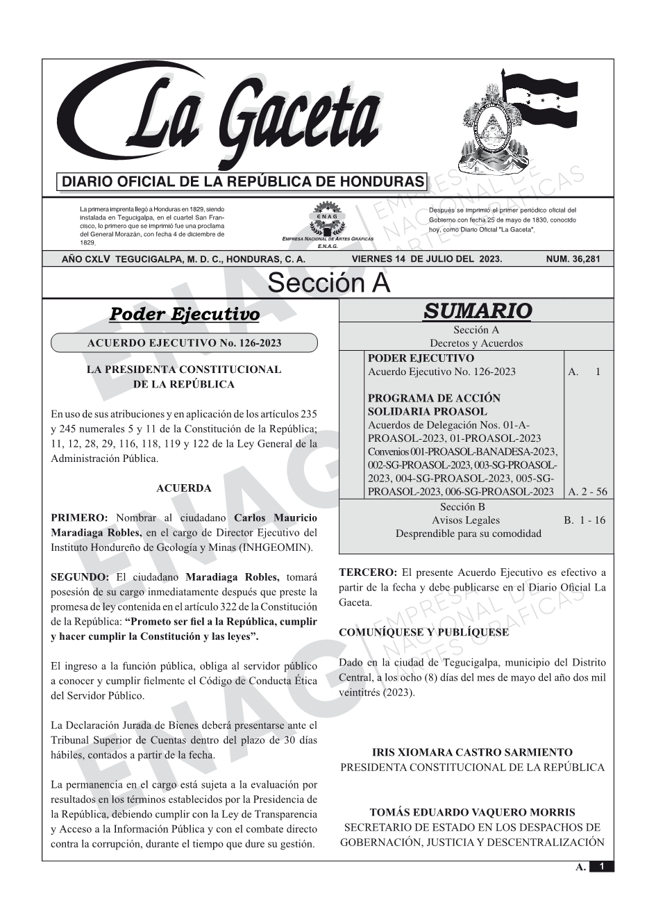 La Gaceta N° 36,281 del 14 de julio de 2023