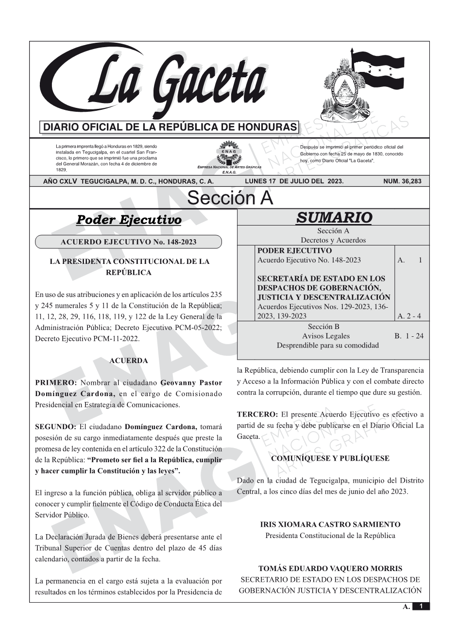 PODER EJECUTIVOAcuerdo Ejecutivo No. 148-2023