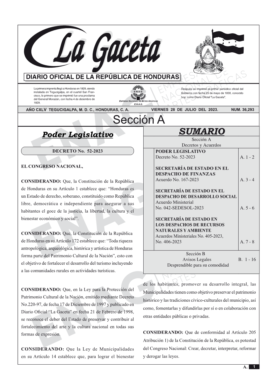 La Gaceta N° 36,293 del 28 de julio de 2023