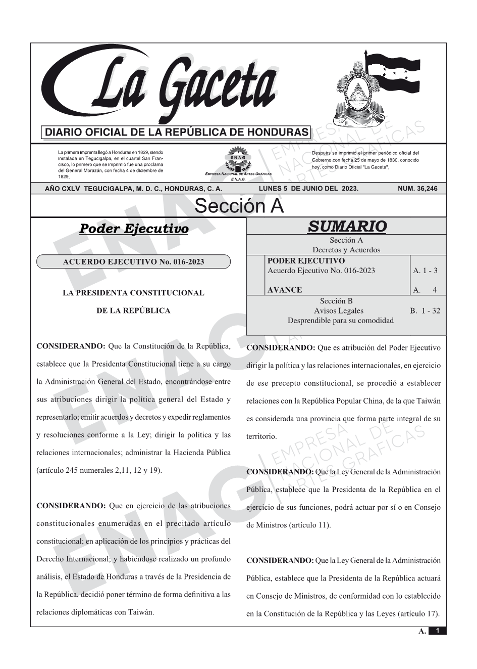 La Gaceta N° 36,246 del 05 de junio de 2023