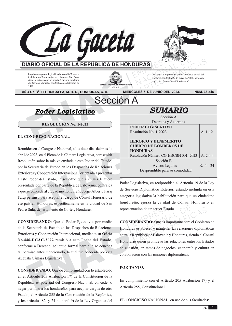 PODER LEGISLATIVOResolución No. 1-2023