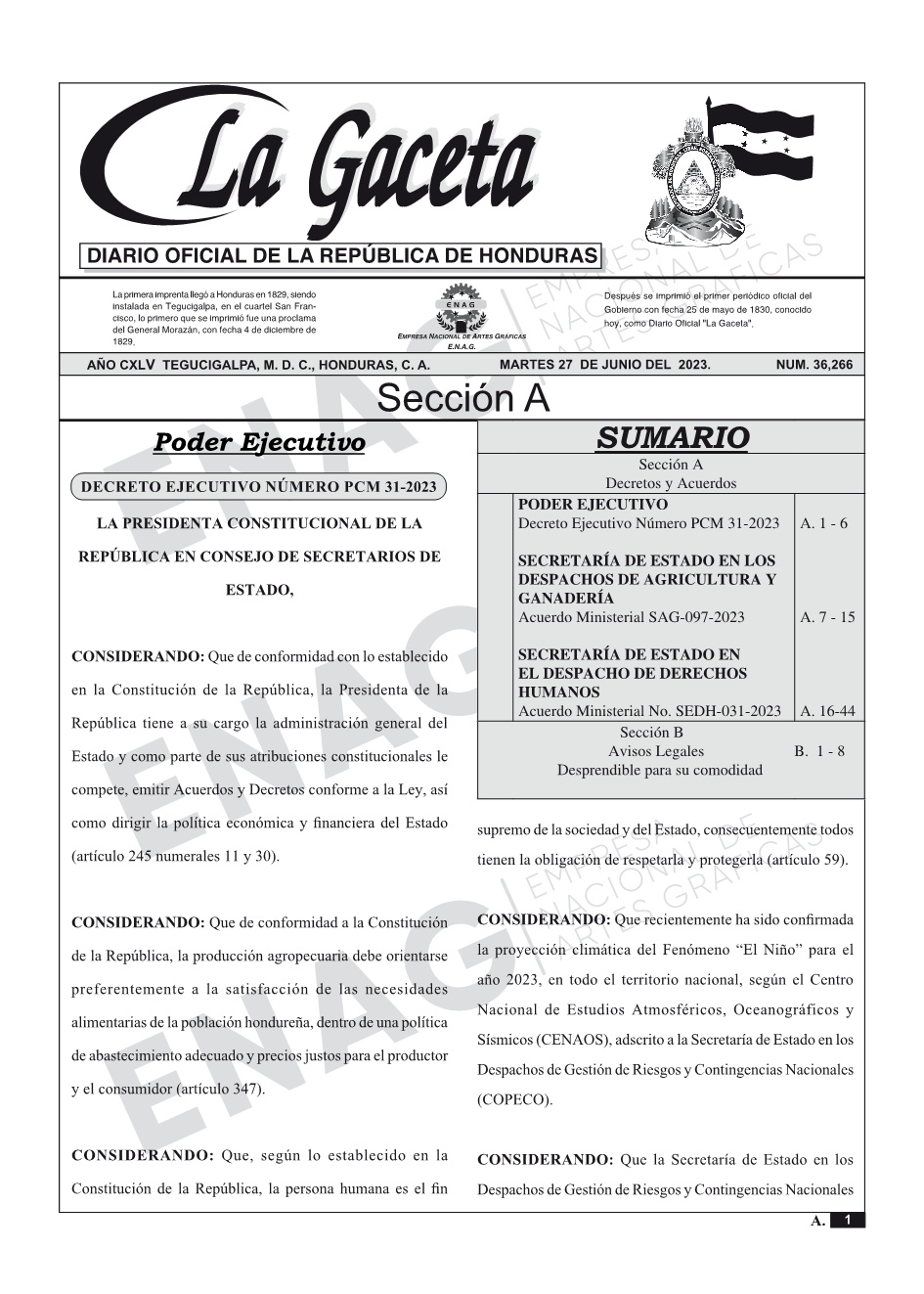 SECRETARÍA DE ESTADO EN LOS DESPACHOS DE AGRICULTURA Y GANADERÍA