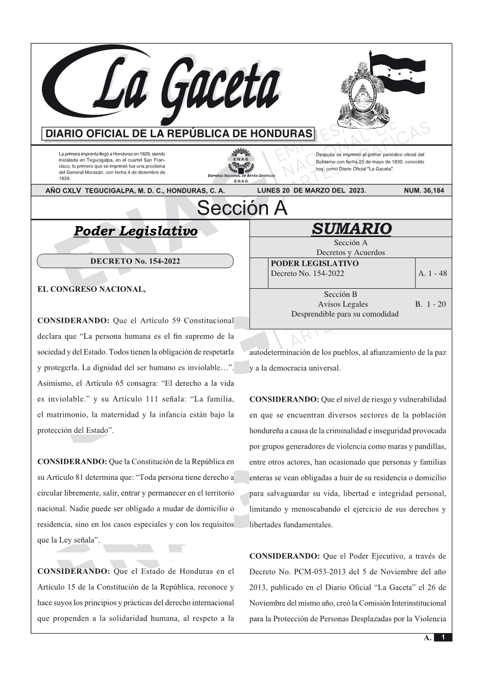 La Gaceta N° 36,184 del 20 de marzo de 2023