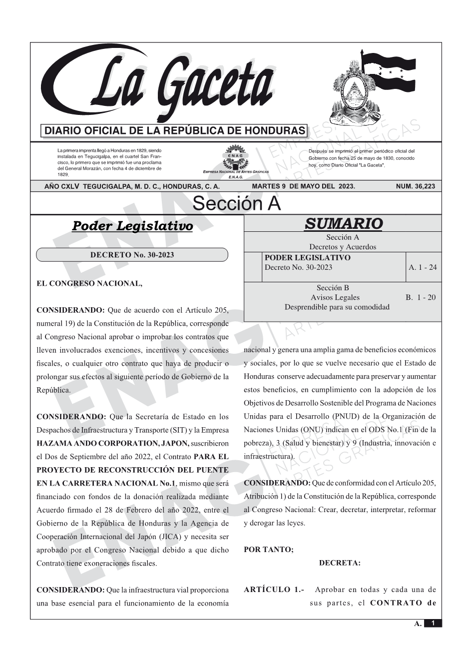 La Gaceta N° 36,223 del 09 de mayo de 2023
