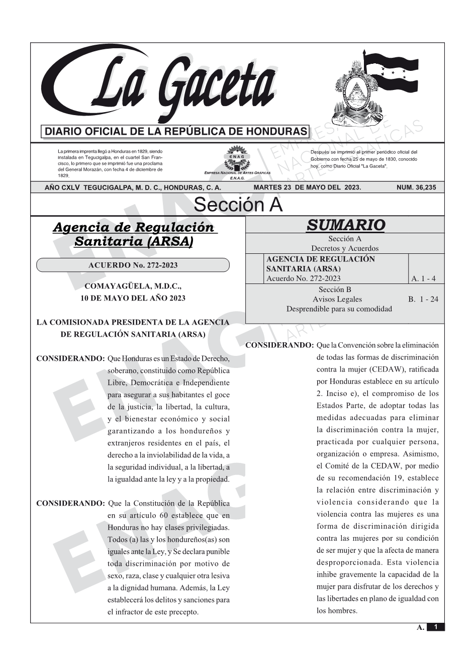 La Gaceta N° 36,235 del 23 de mayo de 2023