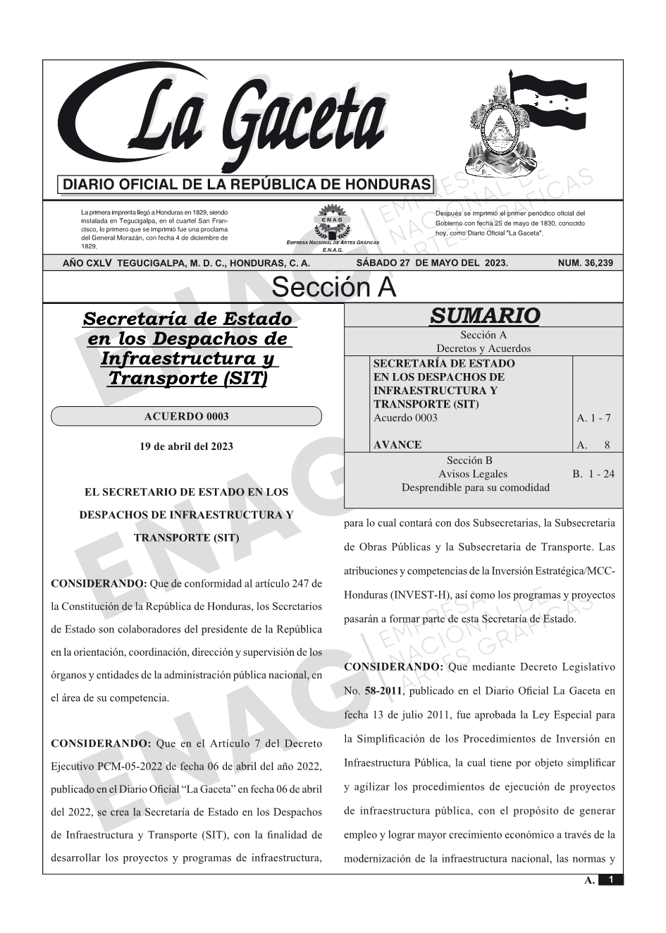 La Gaceta N° 36,239 del 27 de mayo de 2023