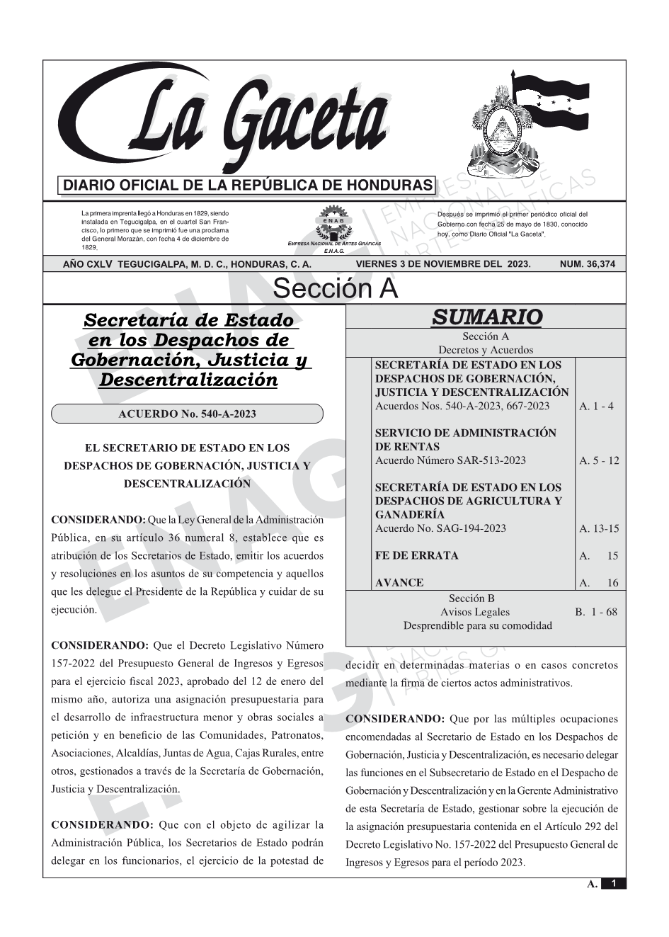 La Gaceta N° 36,374 del 03 de noviembre de 2023