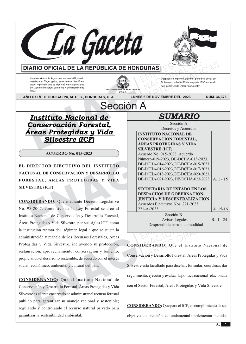 La Gaceta N° 36,376 del 06 de noviembre de 2023