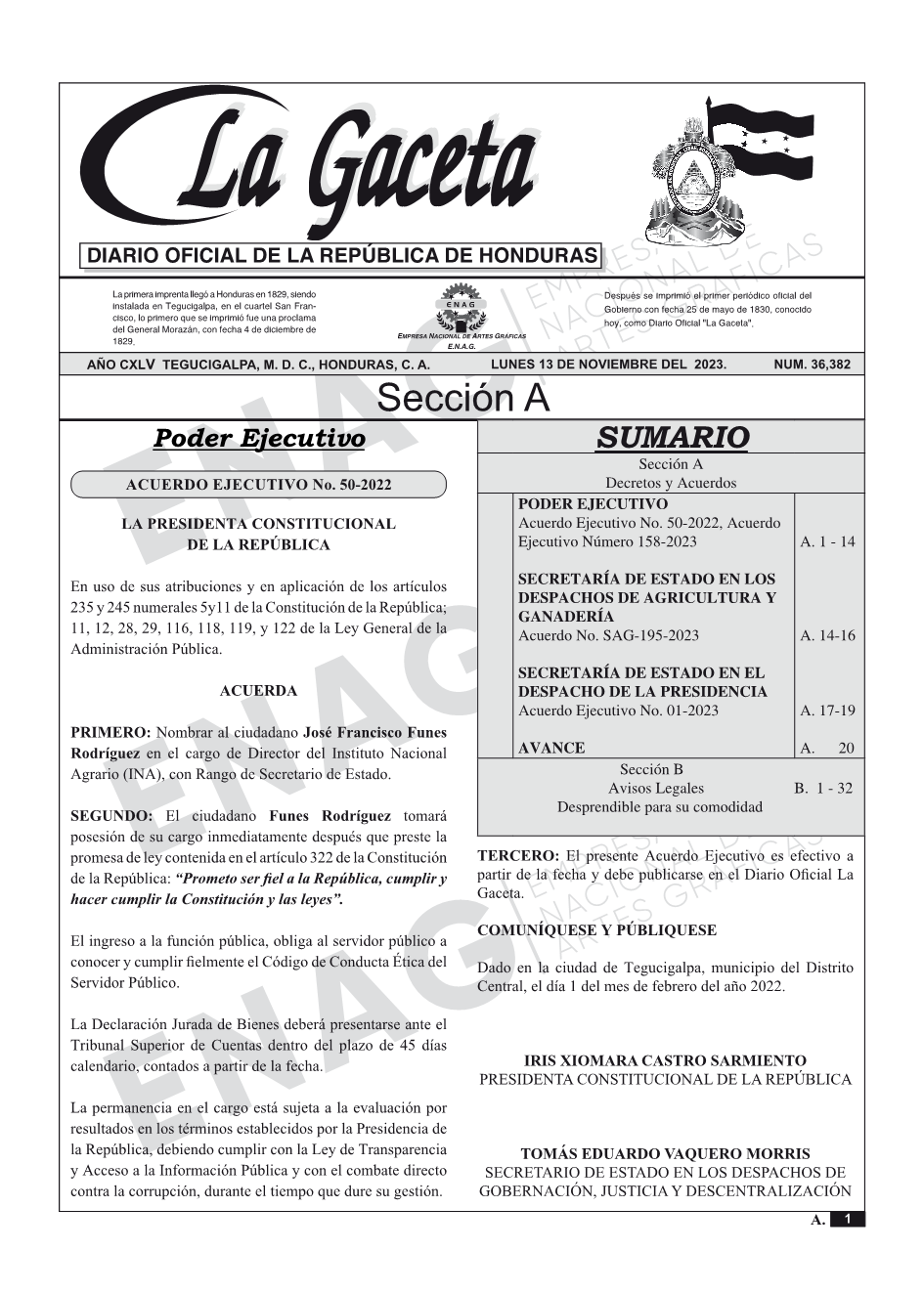 Acuerdo Ejecutivo No. 50-2022, Acuerdo Ejecutivo Número 158-2023