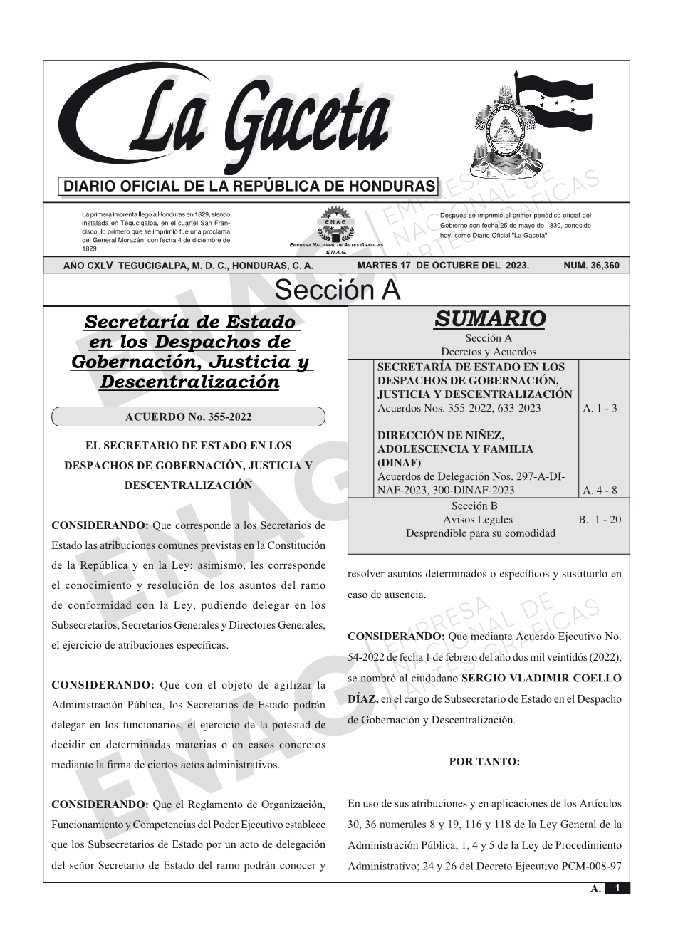 SECRETARÍA DE ESTADO EN LOS DESPACHOS DE GOBERNACIÓN, JUSTICIA Y DESCENTRALIZACIÓNAcuerdos Nos. 355-2022, 633-2023