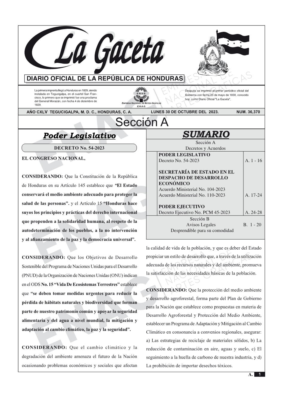 PODER EJECUTIVODecreto Ejecutivo No. PCM 45-2023