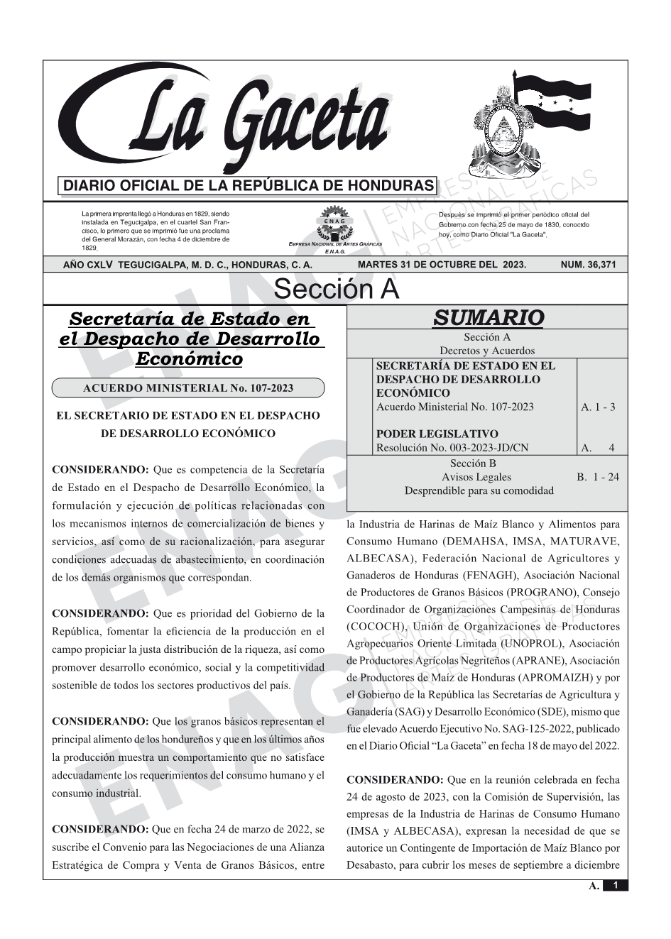 SECRETARÍA DE ESTADO EN EL DESPACHO DE DESARROLLO ECONÓMICOAcuerdo Ministerial No. 107-2023