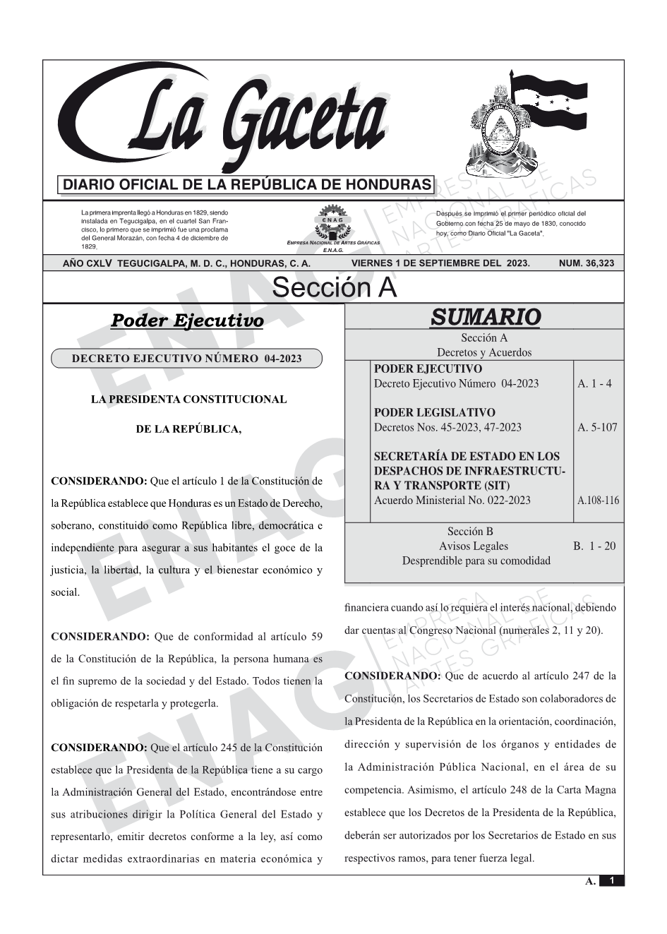 PODER LEGISLATIVODecretos Nos. 45-2023, 47-2023