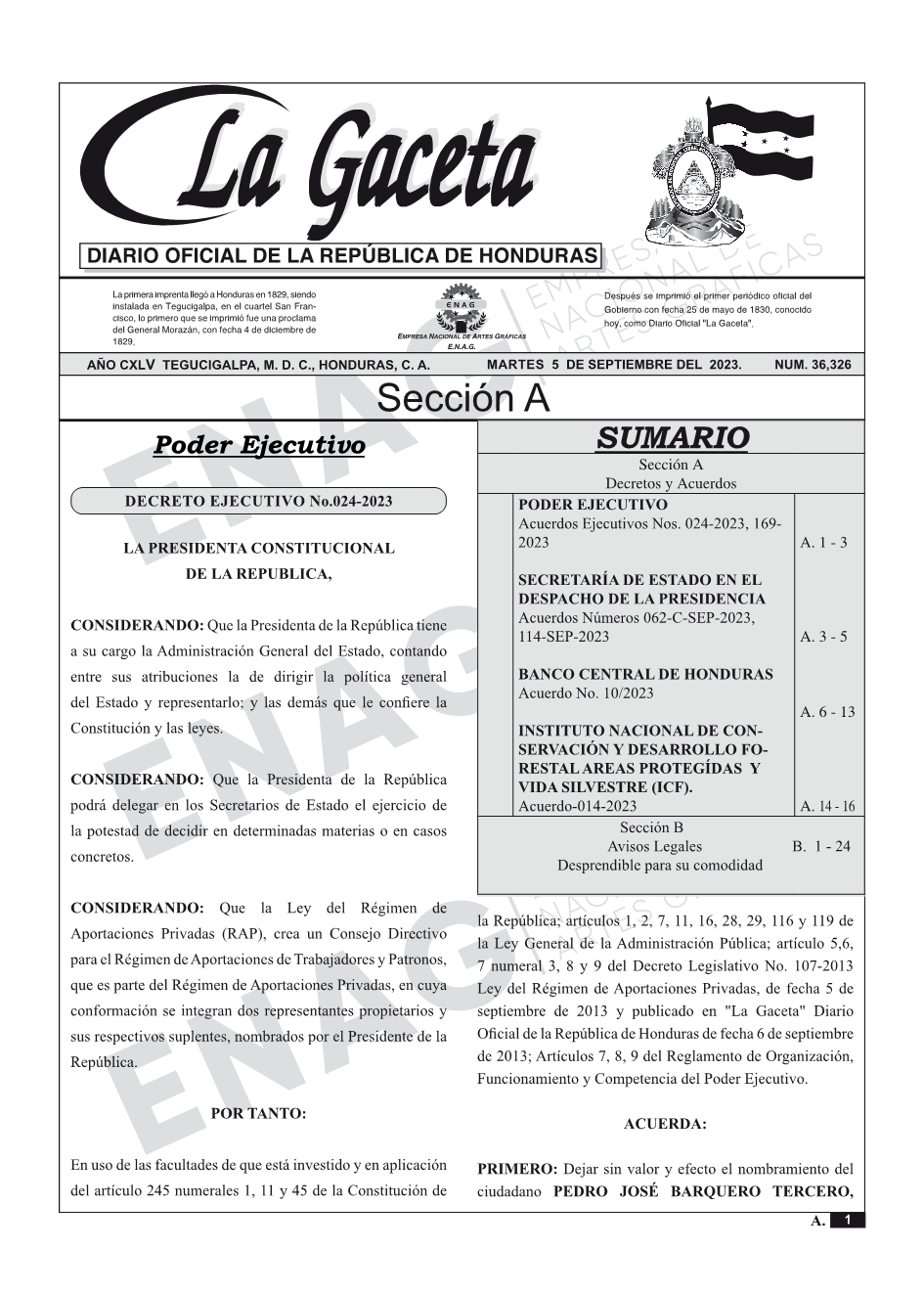 La Gaceta N° 36,326 del 05 de septiembre de 2023