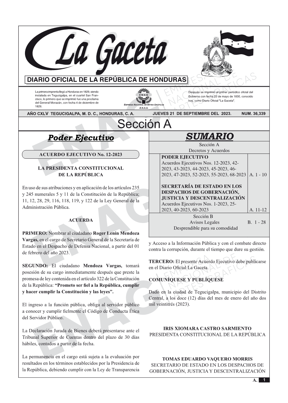 La Gaceta N° 36,339 del 21 de septiembre de 2023