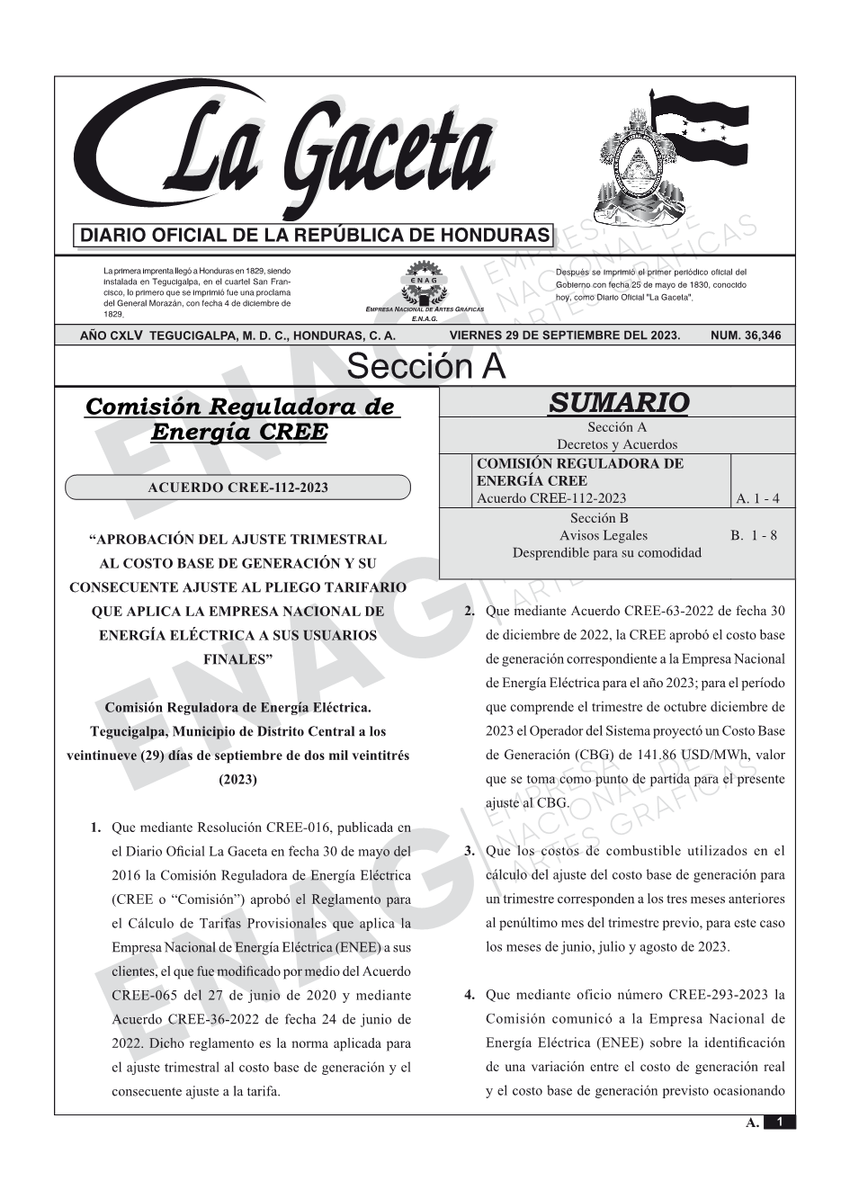 La Gaceta N° 36,346 del 29 de septiembre de 2023