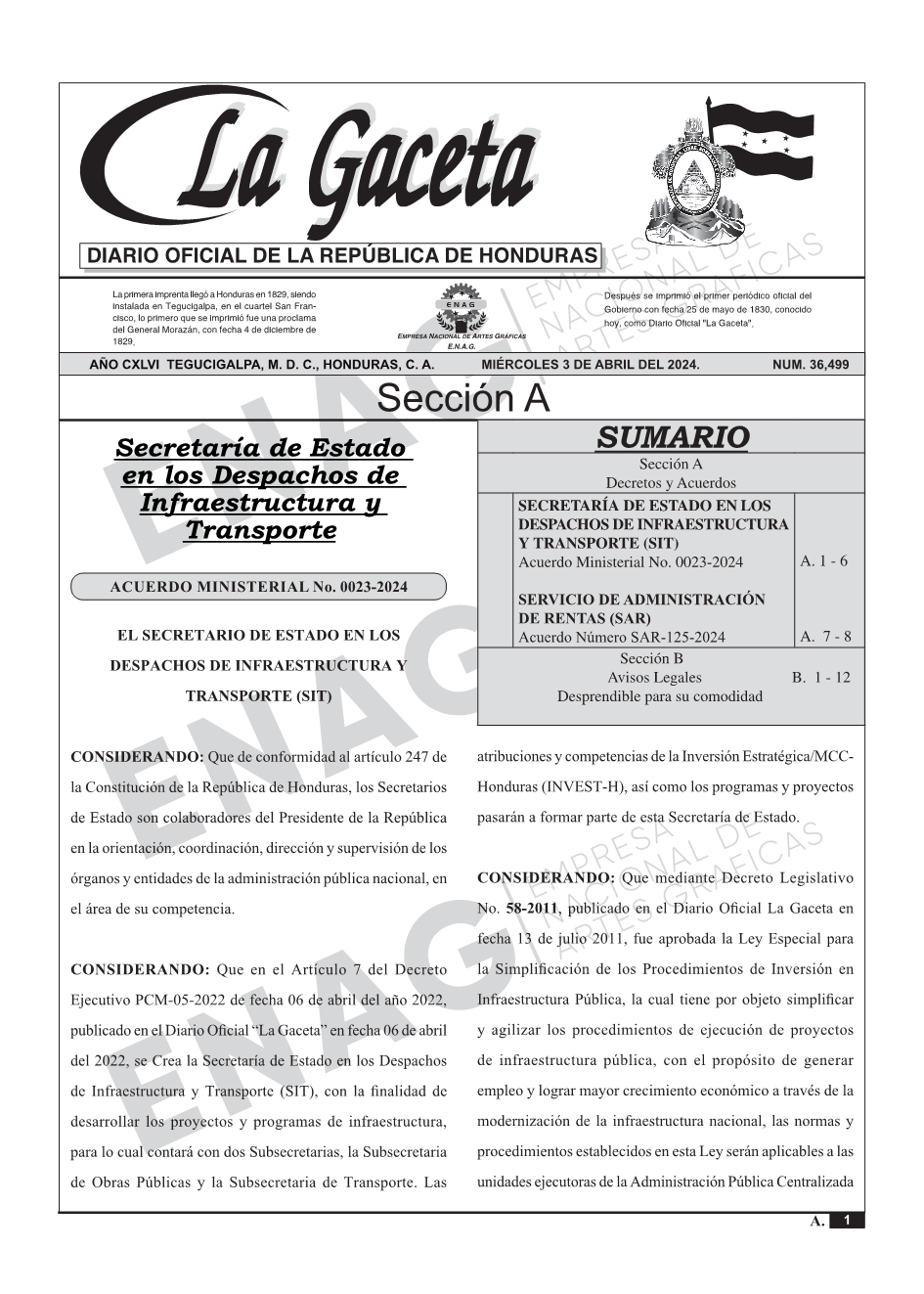 SERVICIO DE ADMINISTRACIÓN DE RENTAS (SAR)Acuerdo Número SAR-125-2024