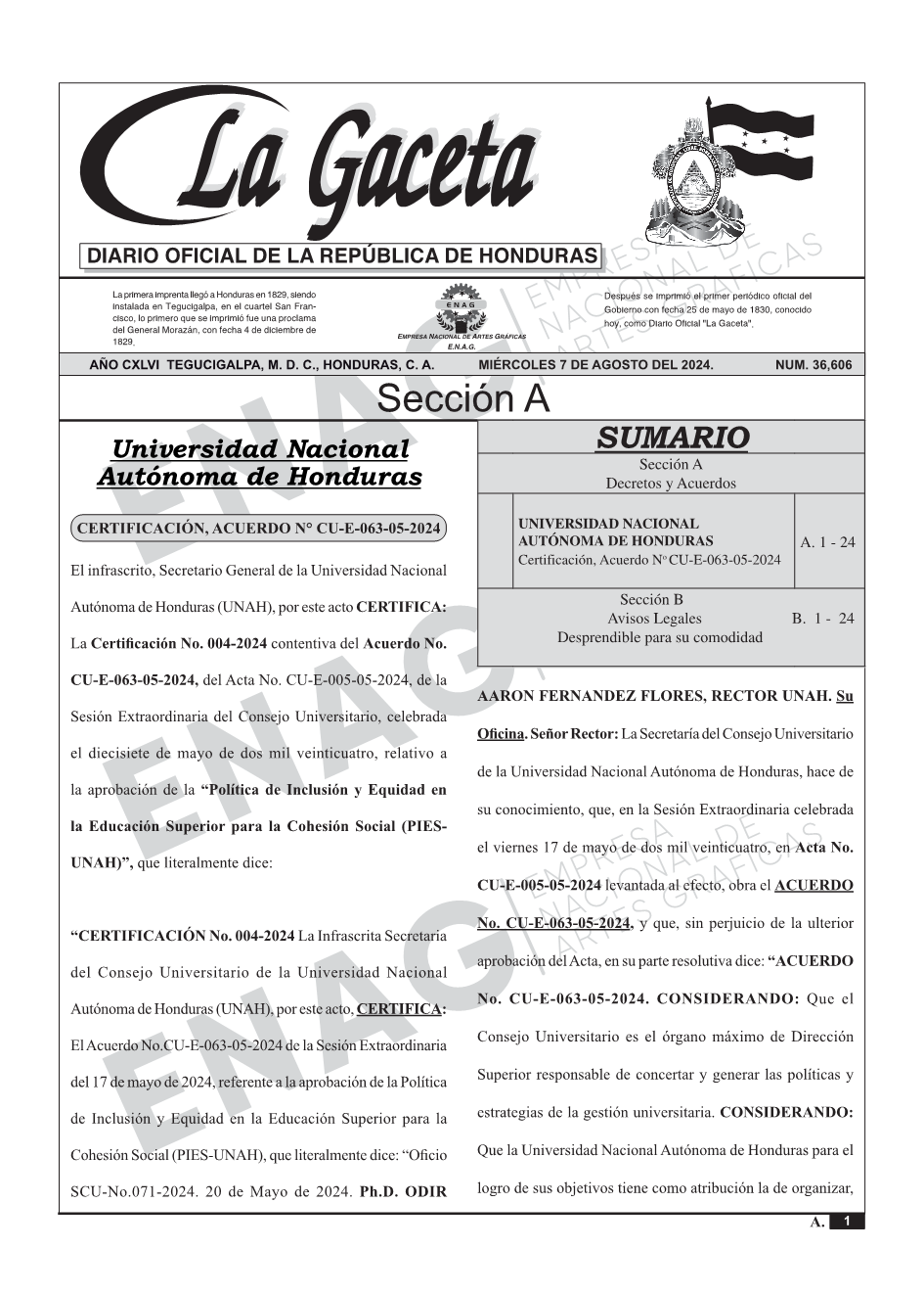 La Gaceta N° 36,606 del 07 de agosto de 2024