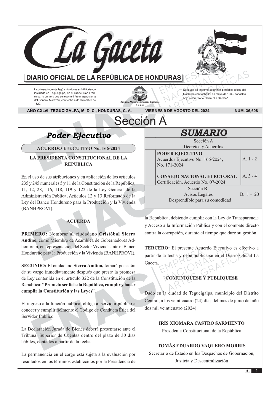 PODER EJECUTIVOAcuerdos Ejecutivo No. 166-2024, No. 171-2024