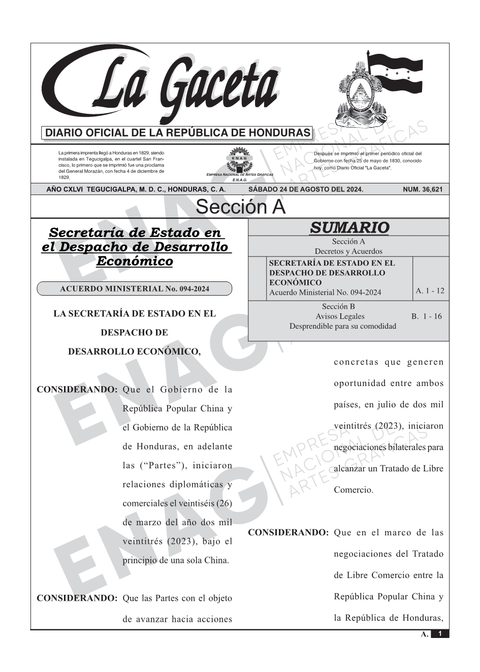 La Gaceta N° 36,621 del 24 de agosto de 2024