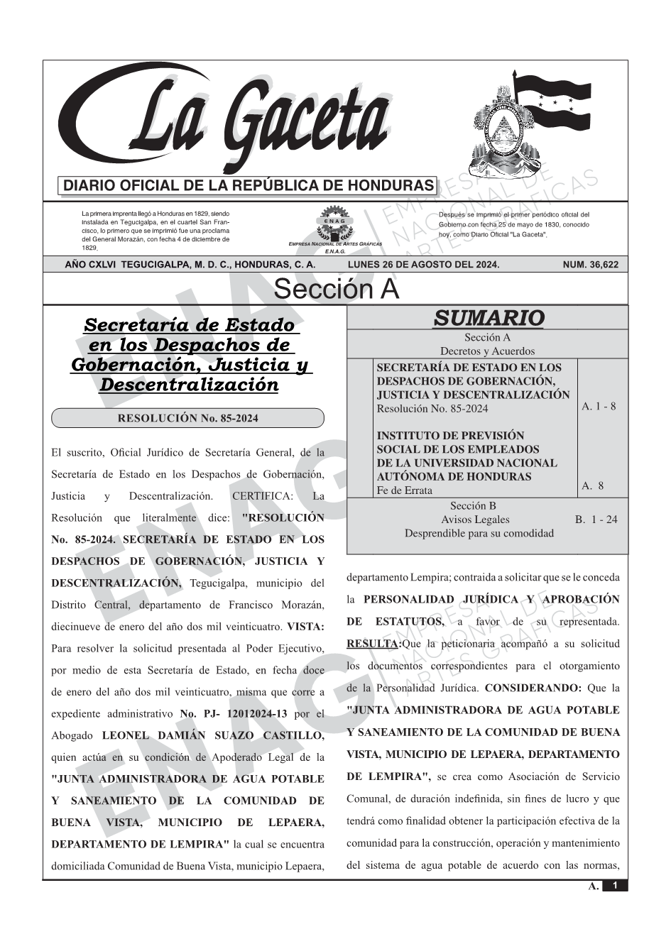 SECRETARÍA DE ESTADO EN LOS DESPACHOS DE GOBERNACIÓN, JUSTICIA Y DESCENTRALIZACIÓNResolución No. 85-2024