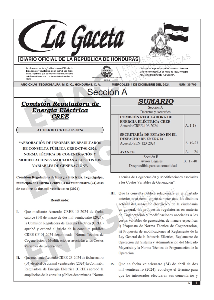 COMISIÓN REGULADORA DE ENERGÍA ELÉCTRICA CREEAcuerdo CREE-106-2024