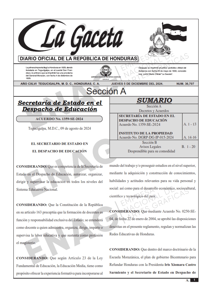 SECRETARÍA DE ESTADO EN EL DESPACHO DE EDUCACIÓNAcuerdo No. 1359-SE-2024