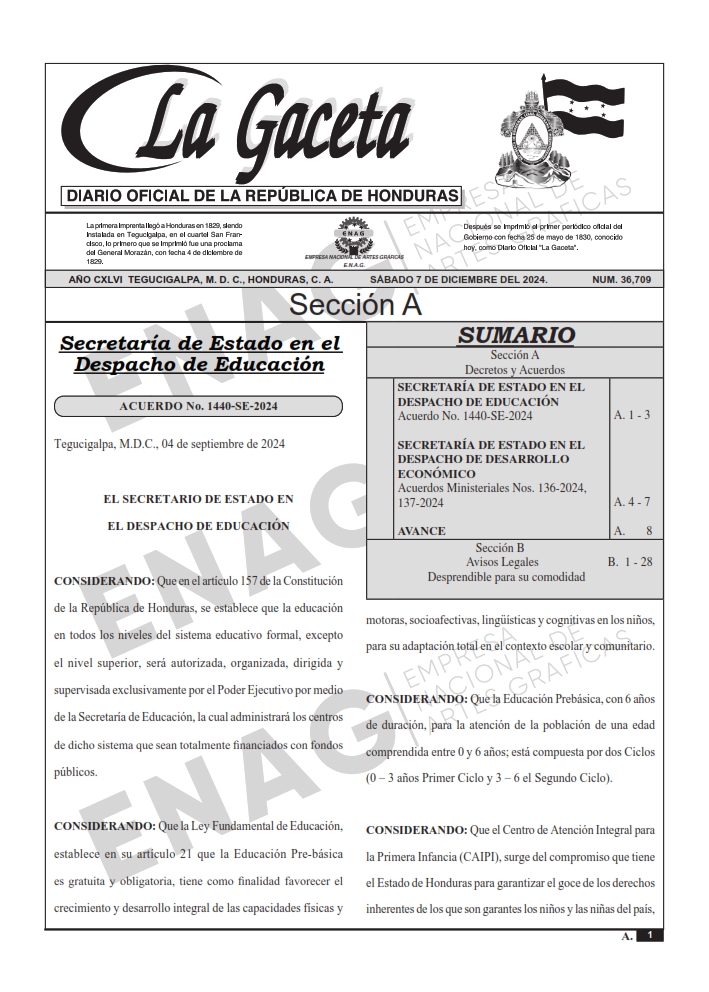 SECRETARÍA DE ESTADO EN EL DESPACHO DE EDUCACIÓNAcuerdo No. 1440-SE-2024