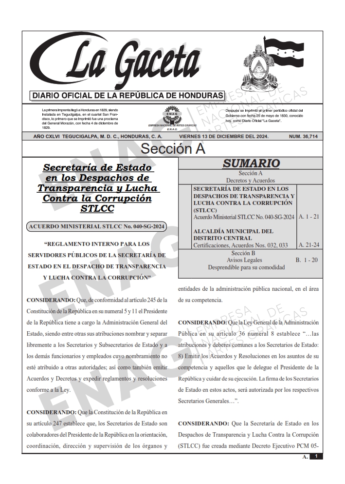 SECRETARÍA DE ESTADO EN LOS DESPACHOS DE TRANSPARENCIA Y LUCHA CONTRA LA CORRUPCIÓN (STLCC)Acuerdo Ministerial STLCC No. 040-SG-2024