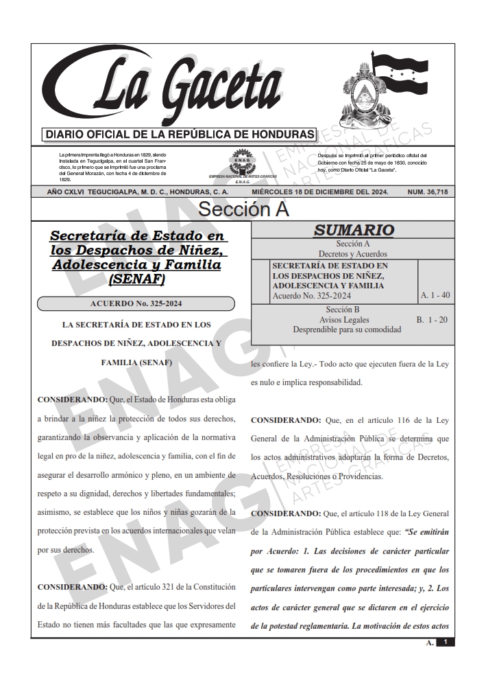 SECRETARÍA DE ESTADO EN LOS DESPACHOS DE NIÑEZ, ADOLESCENCIA Y FAMILIA