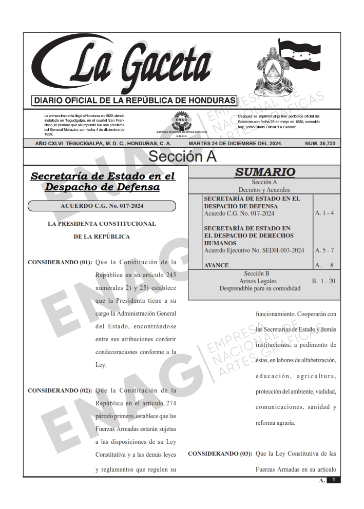 SECRETARÍA DE ESTADO EN EL DESPACHO DE DEFENSAAcuerdo C.G. No. 017-2024