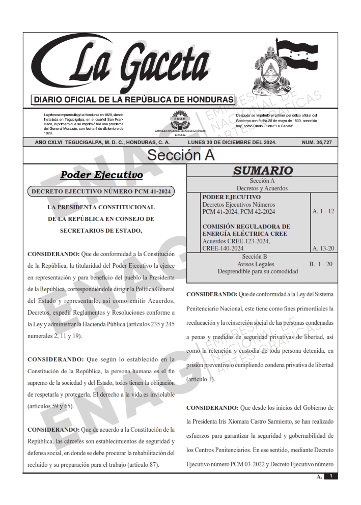 PODER EJECUTIVO Decretos Ejecutivos NúmerosPCM 41-2024, PCM 42-2024