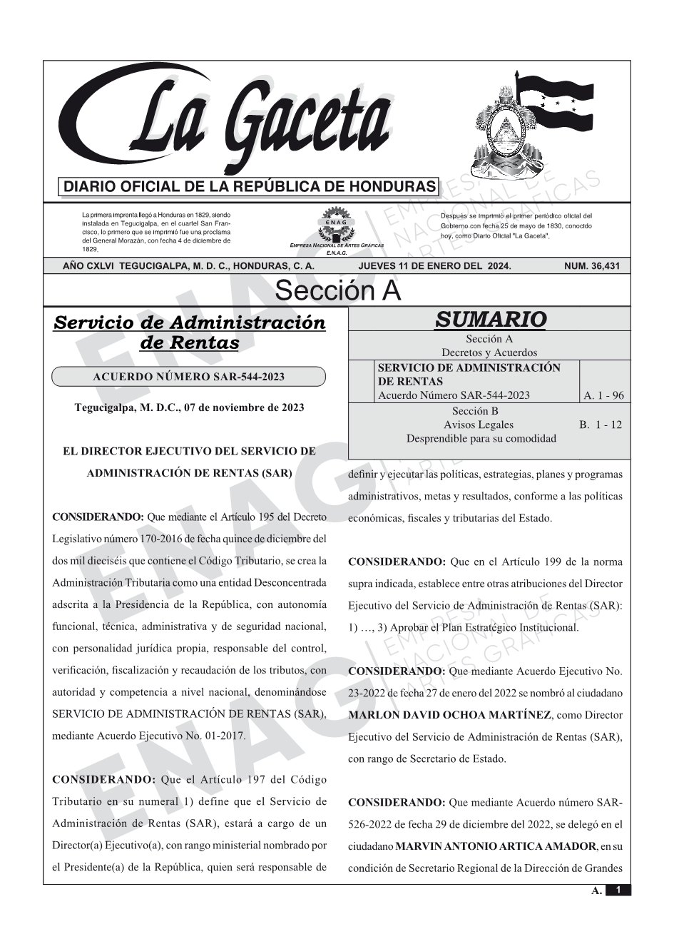 La Gaceta N° 36,431 del 11 de enero de 2024