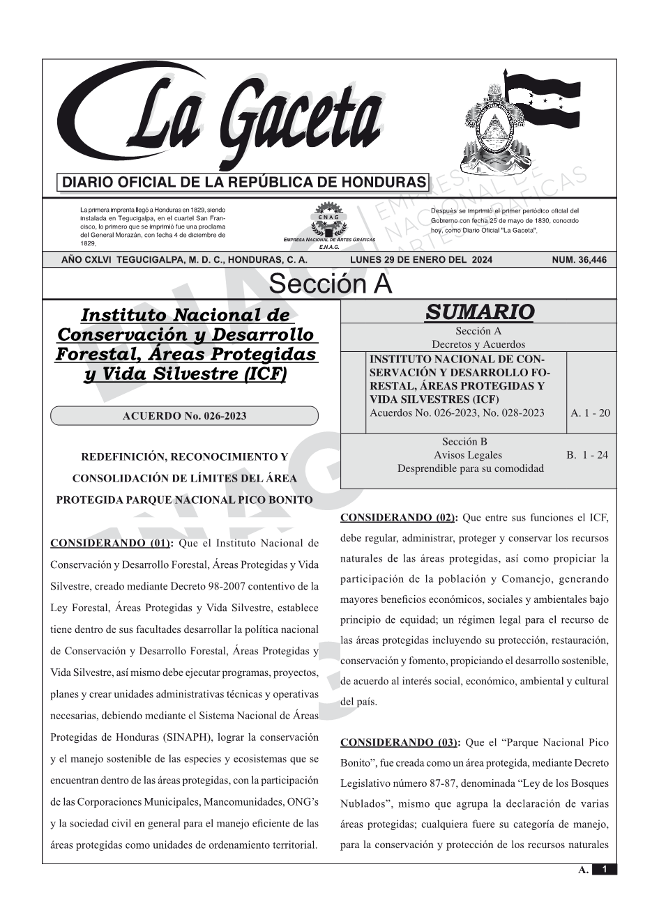 INSTITUTO NACIONAL DE CONSERVACIÓN Y DESARROLLO FORESTAL, ÁREAS PROTEGIDAS Y VIDA SILVESTRES (ICF)Acuerdos No. 026-2023, No. 028-2023