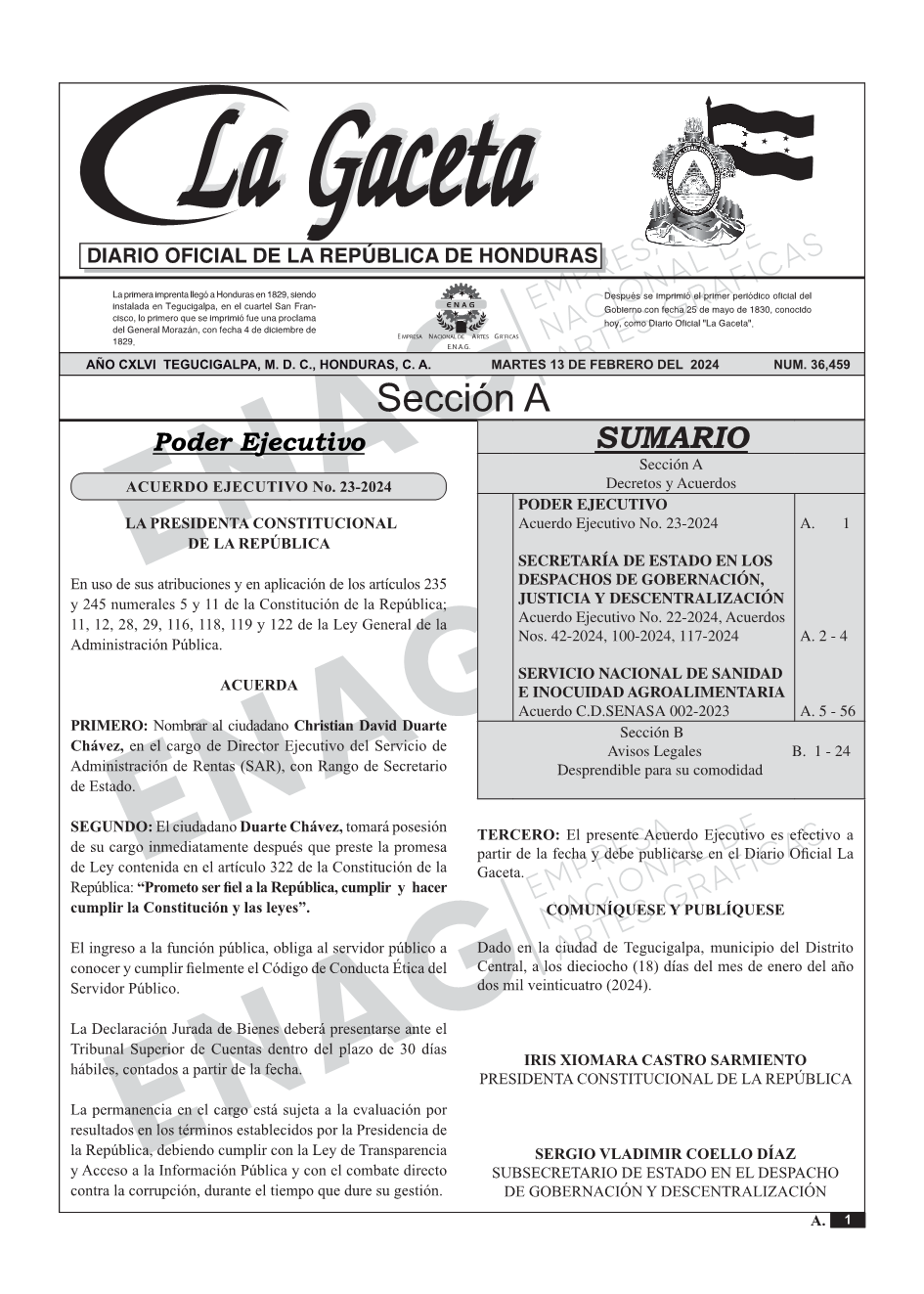 La Gaceta N° 36,459 del 13 de febrero de 2024