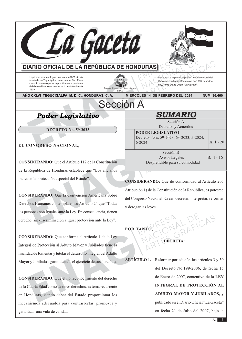 La Gaceta N° 36,460 del 14 de febrero de 2024