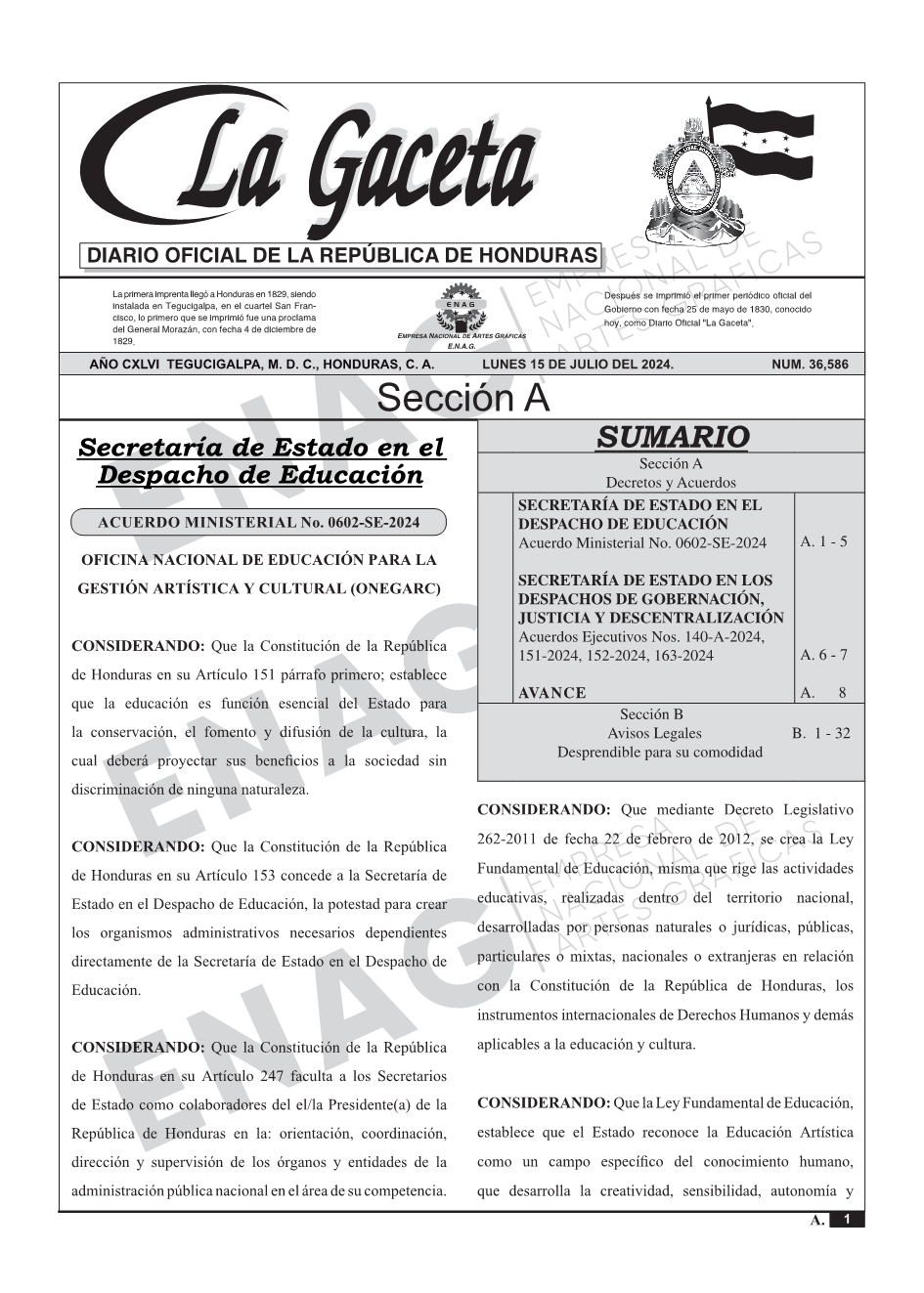 SECRETARÍA DE ESTADO EN LOS DESPACHOS DE GOBERNACIÓN, JUSTICIA Y DESCENTRALIZACIÓNAcuerdos Ejecutivos Nos. 140-A-2024, 151-2024, 152-2024, 163-2024
