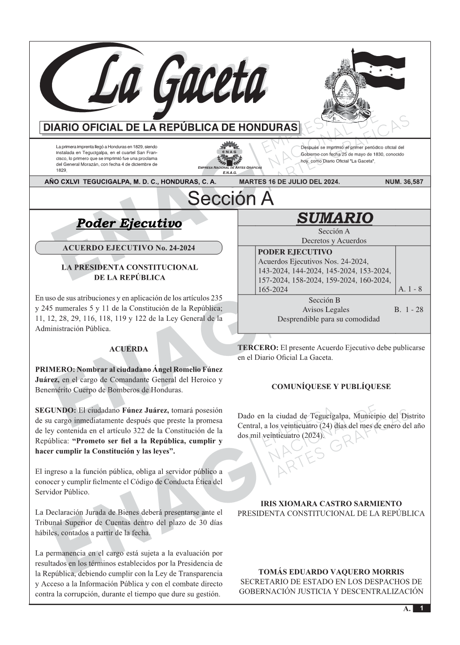 PODER EJECUTIVOAcuerdos Ejecutivos Nos. 24-2024, 143-2024, 144-2024, 145-2024, 153-2024, 157-2024, 158-2024, 159-2024, 160-2024, 165-2024