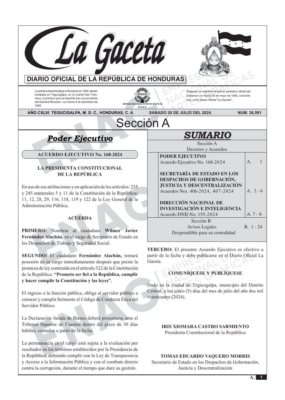 Acuerdo Ejecutivo No. 168-2024