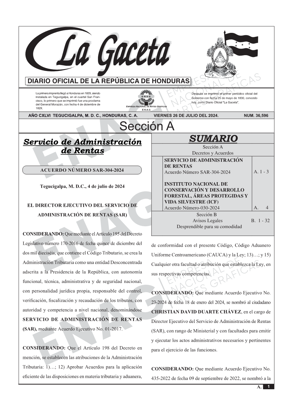 SERVICIO DE ADMINISTRACIÓN DE RENTASAcuerdo Número SAR-304-2024