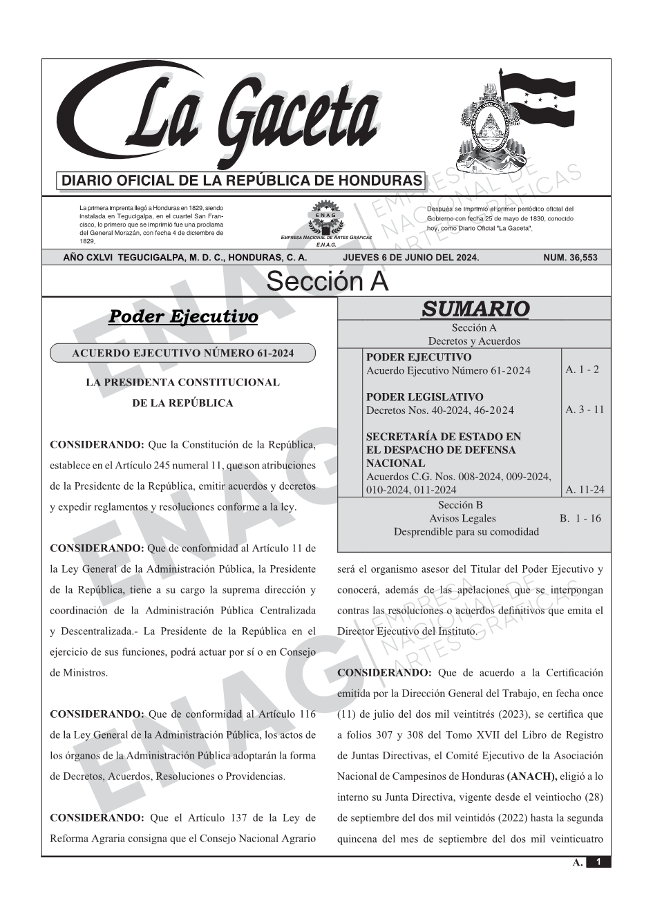 PODER EJECUTIVOAcuerdo Ejecutivo Número 61-2024