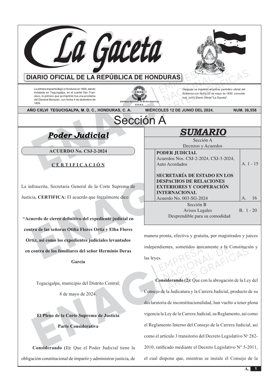 PODER JUDICIALAcuerdos Nos. CSJ-2-2024, CSJ-3-2024, Auto Acordados