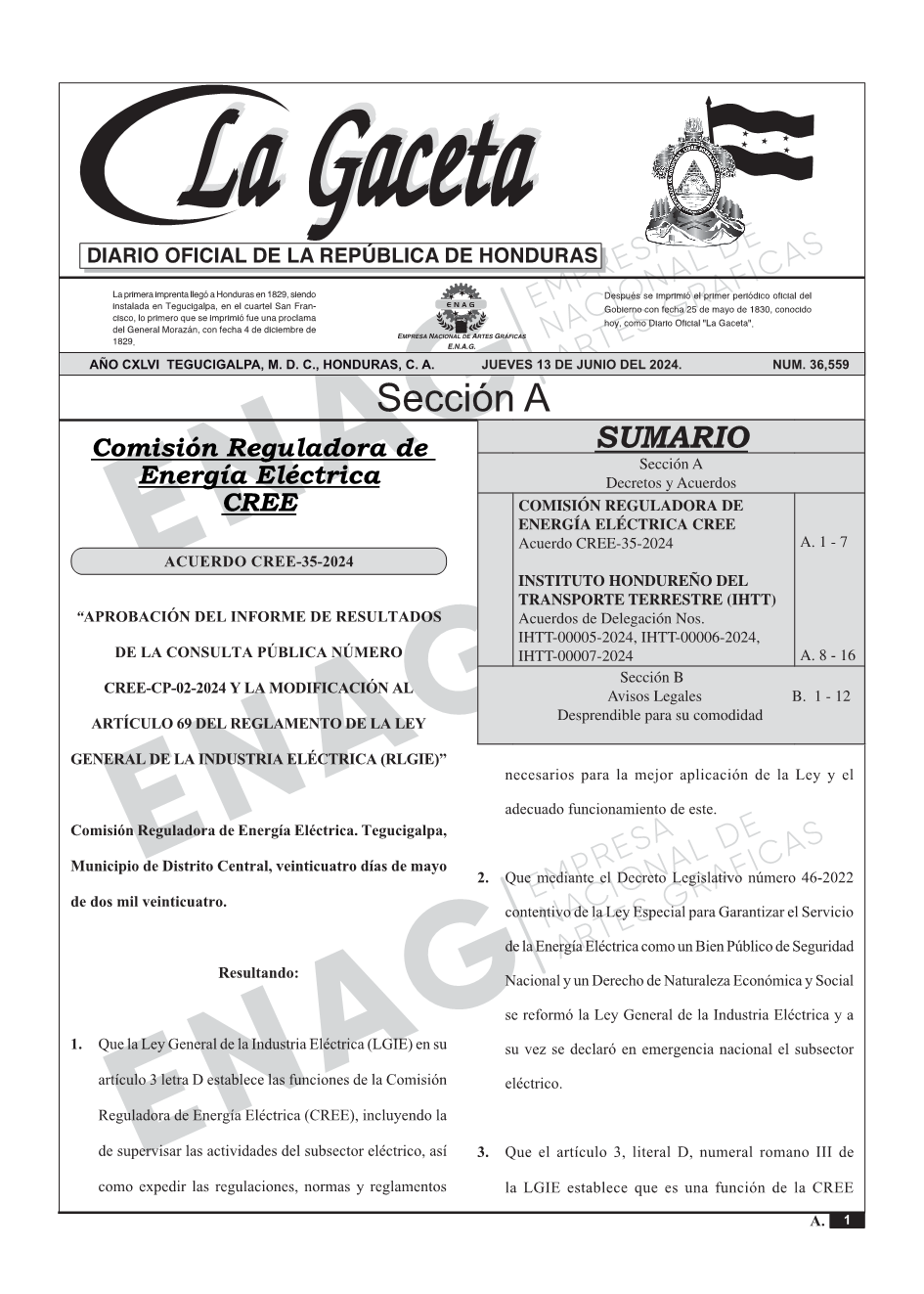 COMISIÓN REGULADORA DE ENERGÍA ELÉCTRICA CREEAcuerdo CREE-35-2024